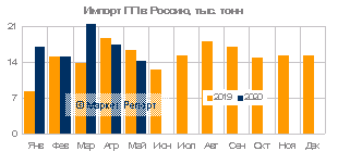 В мае 2020 года российские предприятия ограничили ввоз ПП в связи со спадом продаж и введенным карантином. В результате в мае было ввезено 14,2 тысячи тонн полимеров полипропилена, тогда как в апреле цифра составила 17,5 тысяч тонн. Общий объем поставок до конца мая достиг 85,3 тысячи тонн, а за этот же период 2019 года он составил 74,2 тысячи тонн. В целом же статистика за прошедший период представлена следующими цифрами.