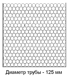 Труба Ø 125Количество труб: 323 шт. Количество, п.м.: 12 п.м. – 3876 п.м.; 12,5 п.м. – 4037,50 п.м.; 13 п.м. – 4199 п.м. Высота загрузки: 2,38м. Количество рядов: 19 шт. (в рядах по 17 шт.) |