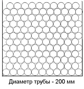 Труба Ø 200Количество труб: 126 шт. Количество, п.м.: 12 п.м. – 1512 п.м.; 12,5 п.м. – 1575 п.м.; 13 п.м. – 1638 п.м. Высота загрузки: 2,40м. Количество рядов: 12 шт. (в рядах по 11,10 шт.) |