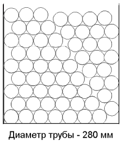 Труба Ø 280Количество труб: 70 шт. Количество, п.м.: 12 п.м. – 840 п.м.; 12,5 п.м. – 875 п.м.; 13 п.м. – 910 п.м. Высота загрузки: 2,52м. Количество рядов: 9 шт. (в рядах по 7 шт.) |