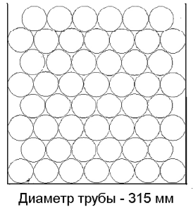 Труба Ø 315Количество труб: 56 шт. Количество, п.м.: 12 п.м. – 672 п.м.; 12,5 п.м. – 700 п.м.; 13 п.м. – 728 п.м. Высота загрузки: 2,52м. Количество рядов: 8 шт. (в рядах по 7 шт.) |