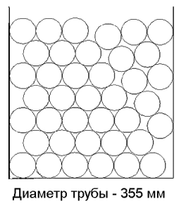 Труба Ø 355Количество труб: 40 шт. Количество, п.м.: 12 п.м. – 480 п.м.; 12,5 п.м. – 500 п.м.; 13 п.м. – 520 п.м. Высота загрузки: 2,49м. Количество рядов: 7 шт. (в рядах по 6,5 шт.) |