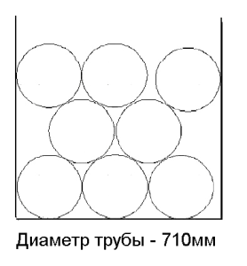 Труба Ø 710Количество труб: 8 шт. Количество, п.м.: 12 п.м. – 96 п.м.; 12,5 п.м. – 100 п.м.; 13 п.м. – 104 п.м. Высота загрузки: 2,13м. Количество рядов: 3 шт. (в рядах по 3,2 шт.) |